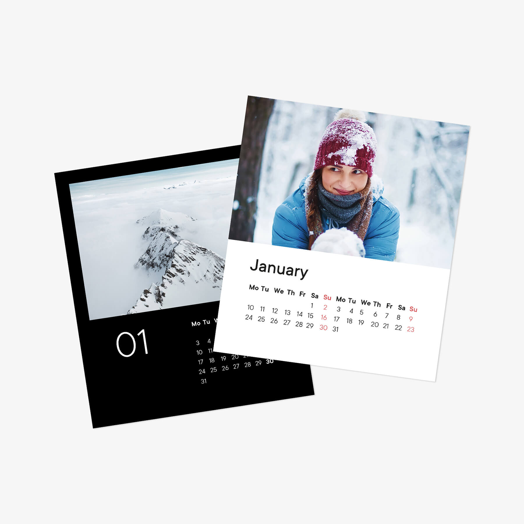 We print each of the monthly cards and the cover of your easel calendar in the highest quality so that your photos shine in rich colours. The wood-free uncoated 290 g / m² is very robust and gives the paper a unique quality feel. Choose which month you want to start your calendar and enjoy it for 12 months regardless of what month you order.
