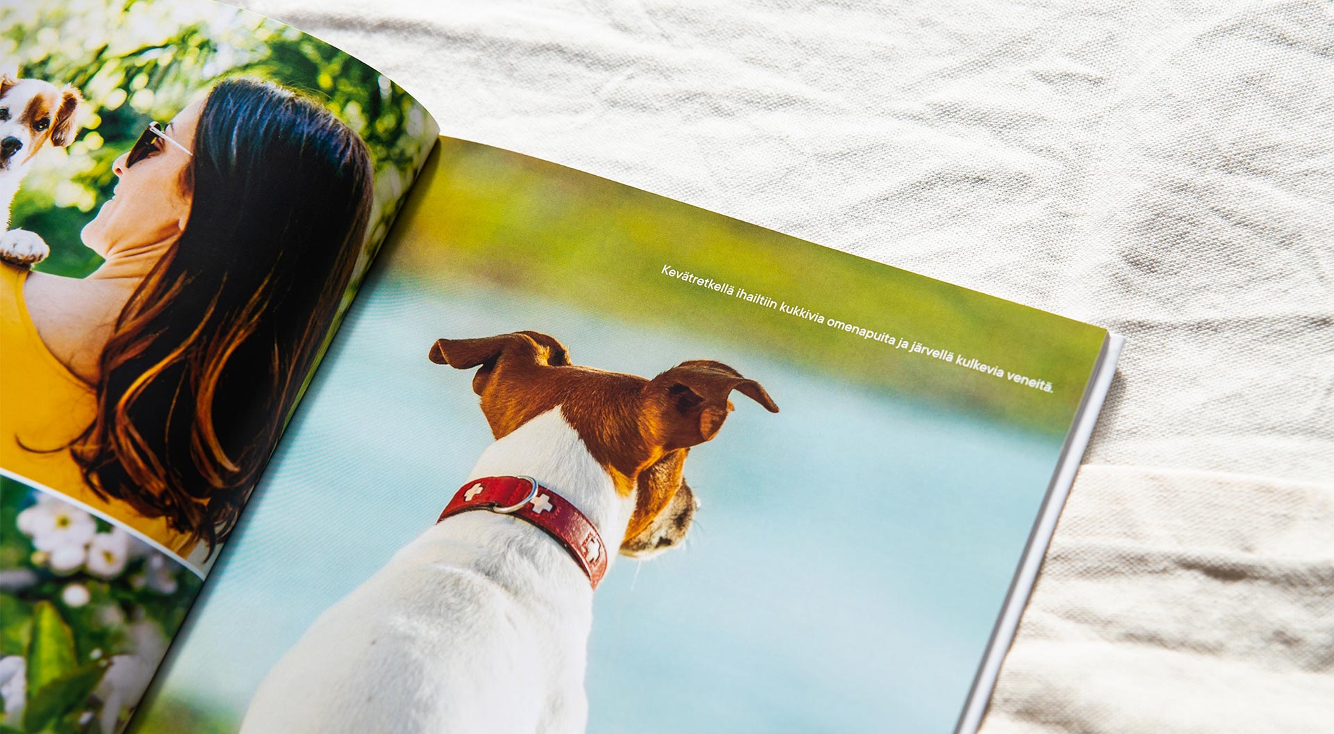Täydennä aukeamia kuvilla maisemista joissa olette lenkkeilleet, kavereita joiden kanssa olette viettäneet aikaa ja yksityiskohdilla joihin koirakaveri on kiinnittänyt huomionsa.