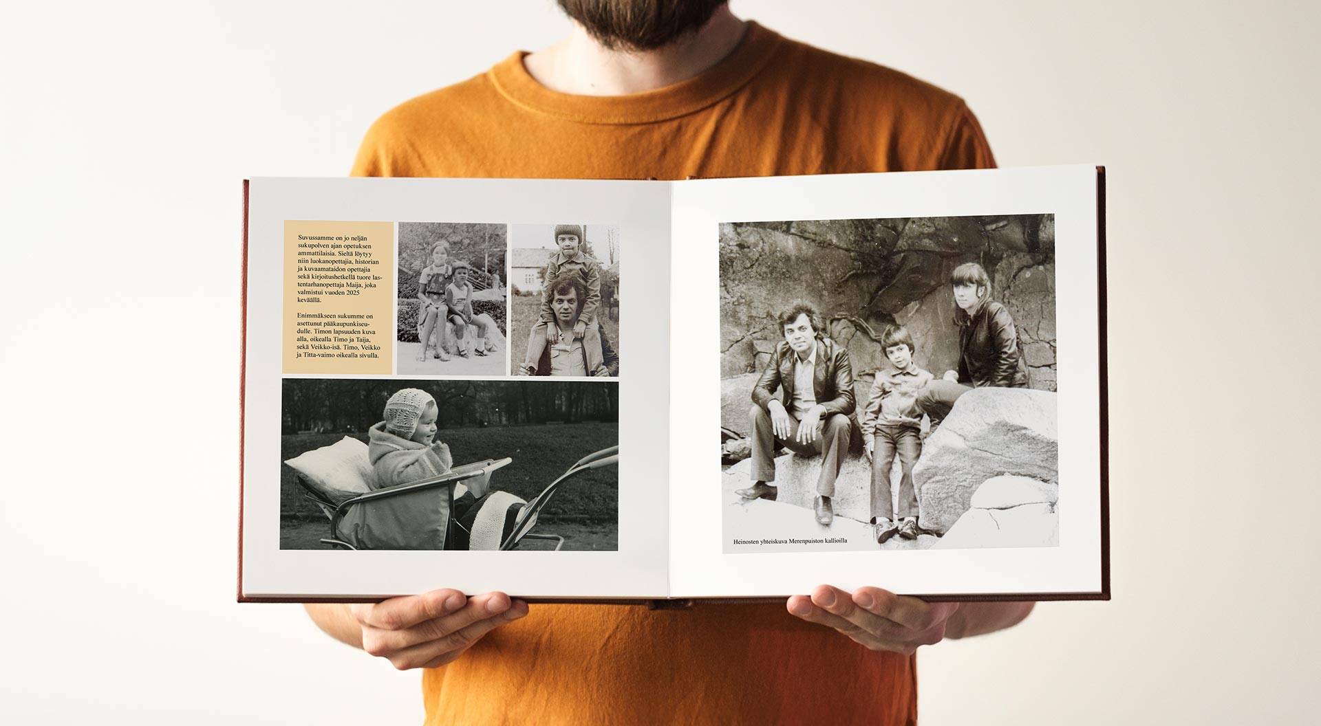 Sukukirjassa kuvat ja tiedot säilyvät hyvässä tallessa ja muistot tuoreina kautta vuosien. Ifolorin laadukkaita kuvakirjoja on mukava selailla ja antaa mielen vaellella suvun historiikissa. Jos mietit lahjaa vaikka pyöreitä vuosia täyttävälle sisarukselle tai isoäidille, sukukirja on oivallinen valinta. Ja mikä parasta: kun teet sukukirjan, saat siitä helposti omat kappaleet kaikille halukkaille.