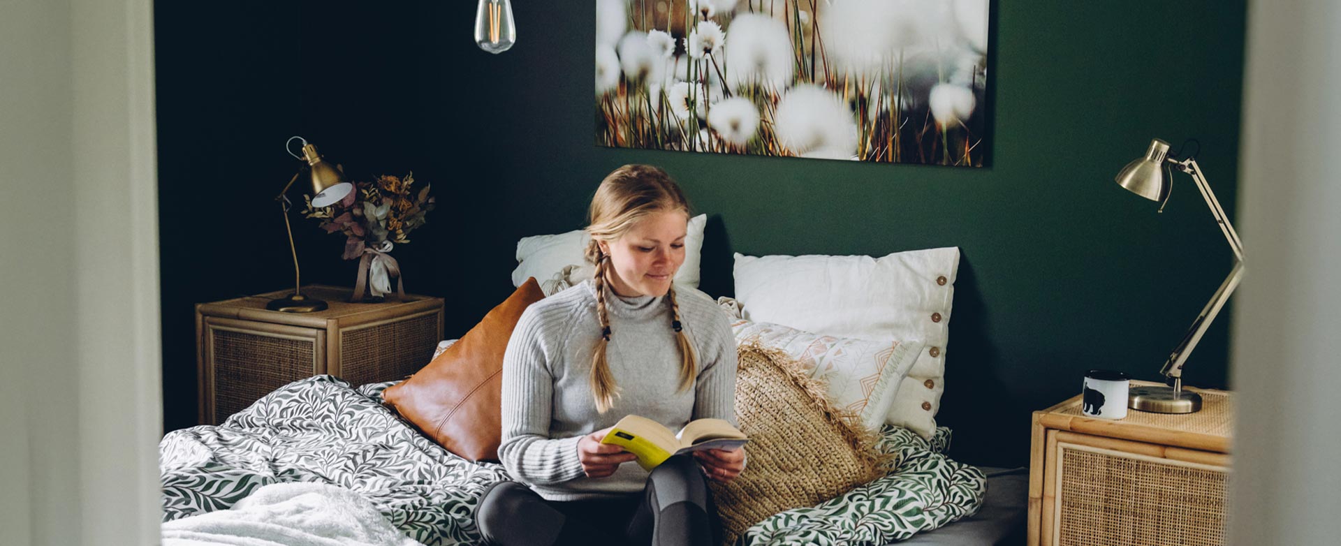 ”Tupasvilla-canvastaulu oli juuri se, mitä tarvittiin viimeistelemään kutsuvan kotoisa makkari. Yksi taulu voi tehdä huoneen ilmeelle todella paljon, sitoa kaiken yhteen.